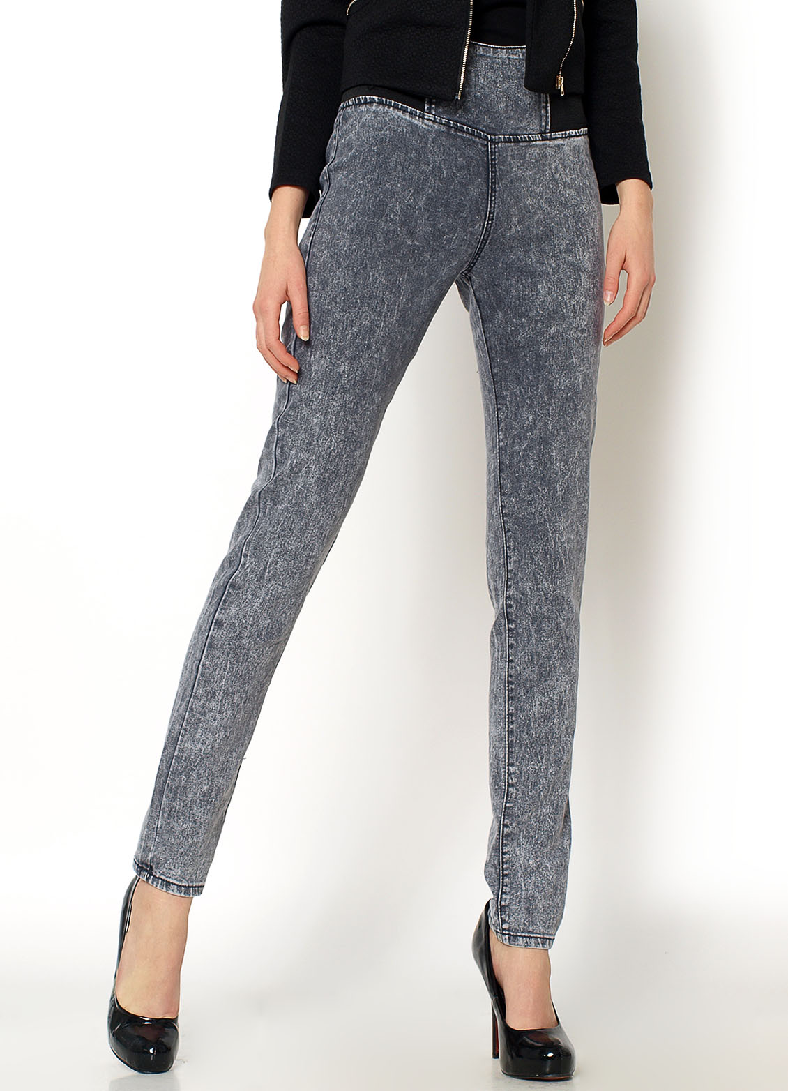 Marmurkowy jeans, fason rurki, szeroki elastyczny pas, wyższy stan.Materiał 95% bawełna, 5% lycra.Modelka wzrost 175cm, na co dzień nosi S/M, rozmiar z prezentacji produktu L