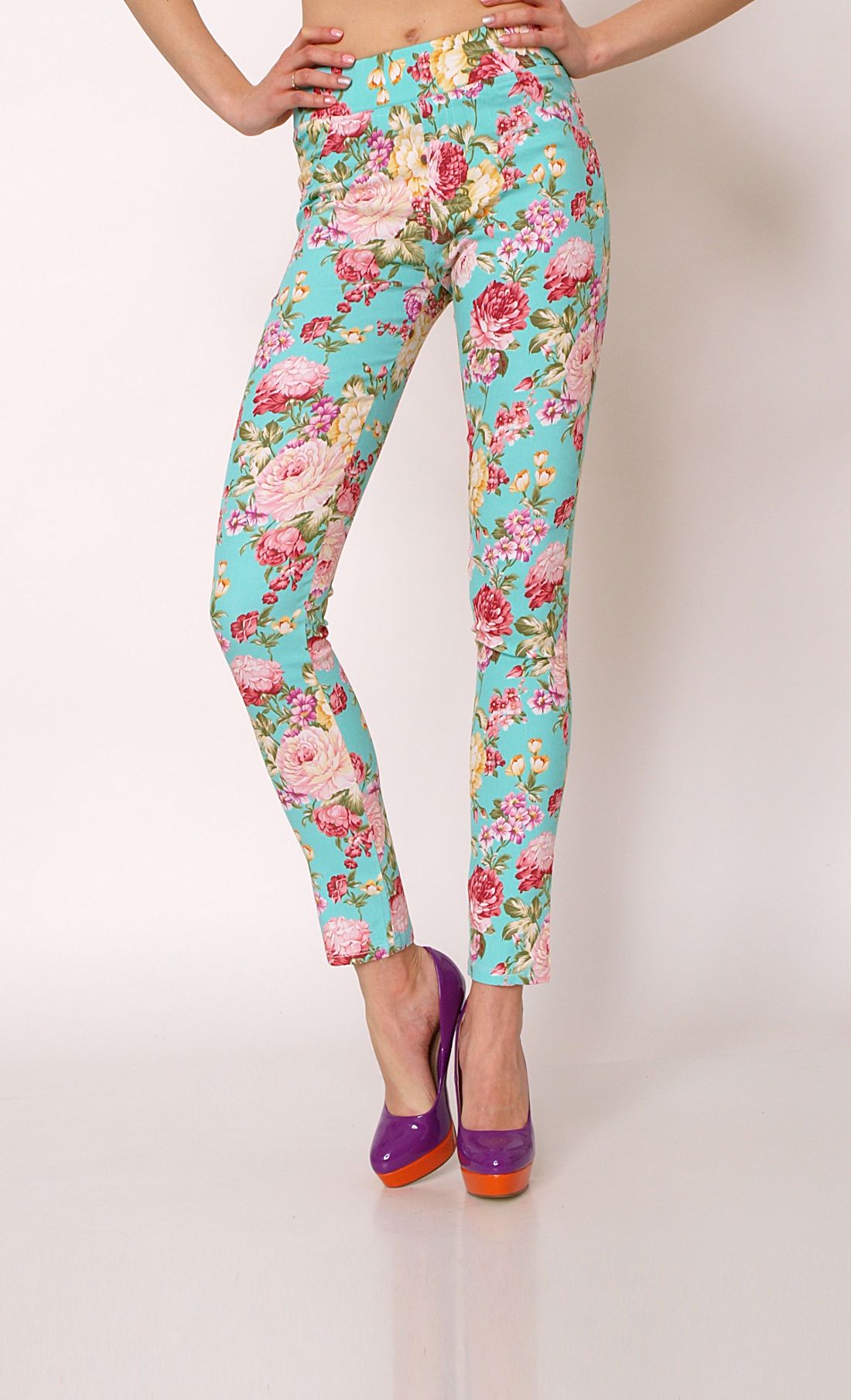Prawdziwy hit tej wiosny. Kolorowe spodnie typu rurki w najmodniejszy kwiatowy motyw. Spodnie na gumce w pasie. Z przodu imitacja kieszeni i rozporka. Z tyłu kieszenie wykończone złotymi ćwiekami. Super wygodne i komfortowe, zupełnie jak legginsy. W połączeniu z gładkimi topami i koszulka prezentuje się naprawdę niepowtarzalnie.Skład: 70% bawełna, 20% poliester, 10% elastan.