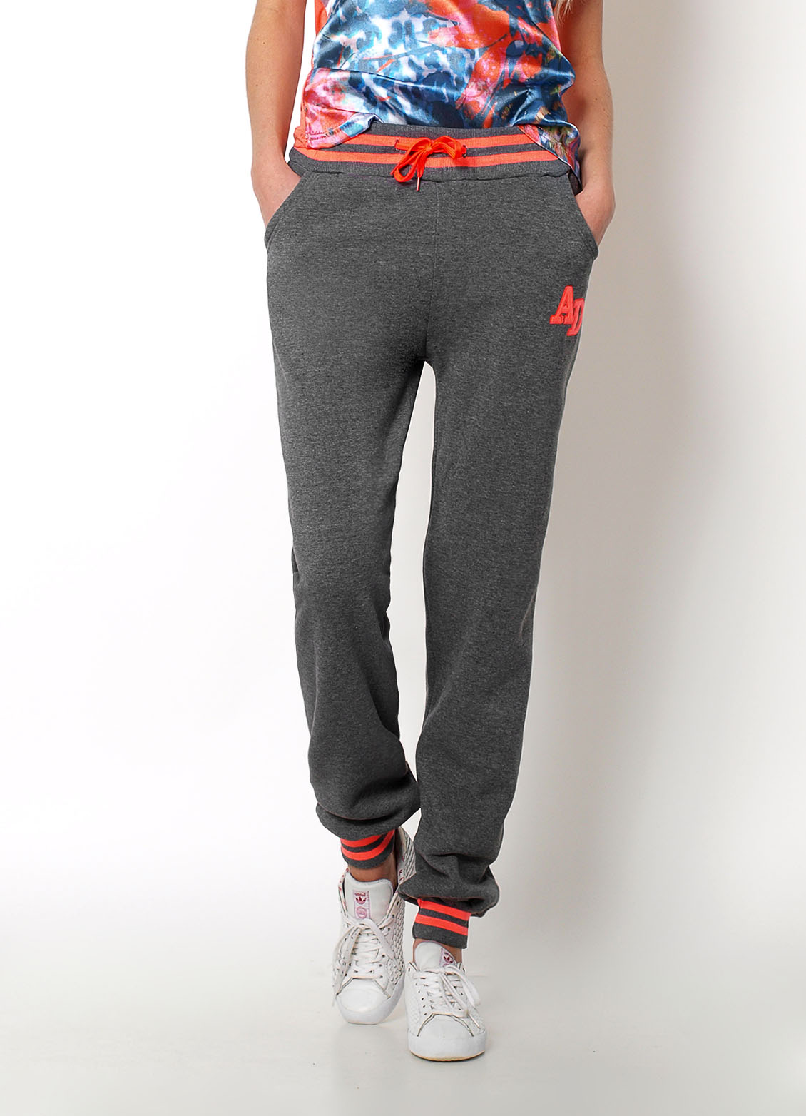 Spodnie dresowe z kontrastowymi elementami. W pasie gumka wraz ze sznurkiem do regulacji. Tył gładki, na przodzie kieszenie. Materiał: 65% bawełna, 35% poliester.Modelka: wzrost 175 cm, na co dzień nosi S/M, rozmiar z prezentacji produktu M.
