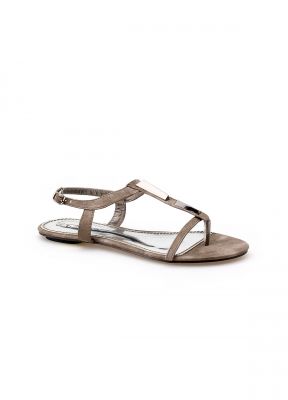 Damskie sandałki typu japonki, w klasycznym wydaniu, na kostce zapinane na klamerkę, cienkie paski, z przodu zdobione elementami w metalicznym kolorze, płaska podeszwa.