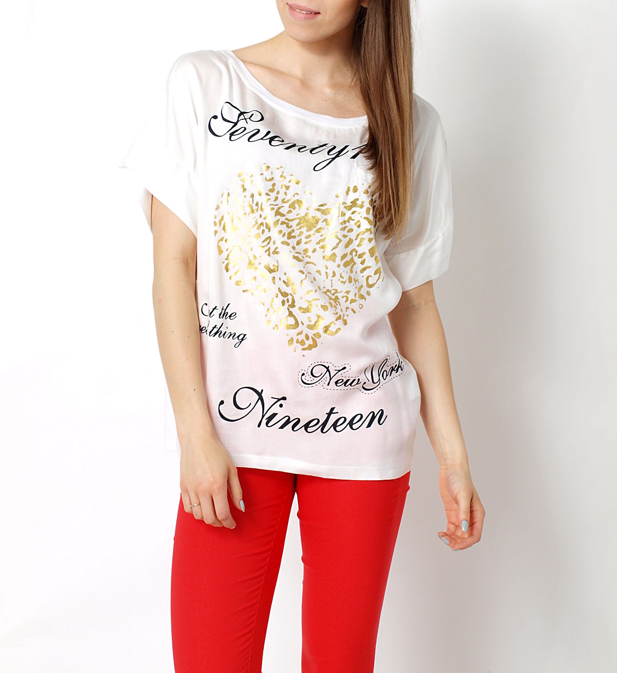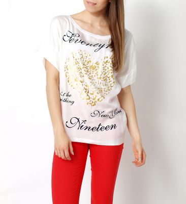 Strona głównaOdzież damskaBluzkiKrótki rękawOSTATNIE SZTUKI -20% SALE Luźna bluzka serce print nadruk
