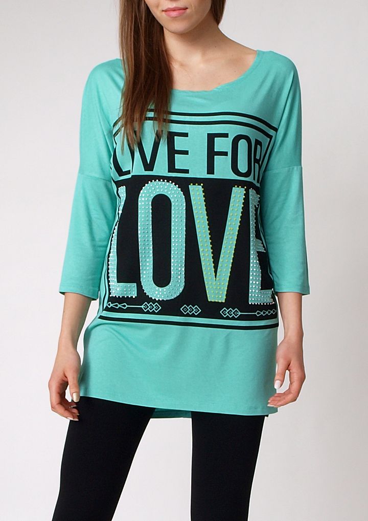 Luźna tunika typu nietoperz. Rękaw o długości 3/4. Na dole, po bokach rozcięcia. Tył delikatnie dłuższy. Bardzo wygodna długa bluzka, o modnym, szerokim kroju. Idealna dla pań o każdym typie figury. Wykonana z elastycznego, miłego w dotyku materiału. Świetnie leży, ładnie prezentuje się na sylwetce. Dostępna w modnych, wiosennych kolorach.Skład: 95% wiskoza, 5% elastan.