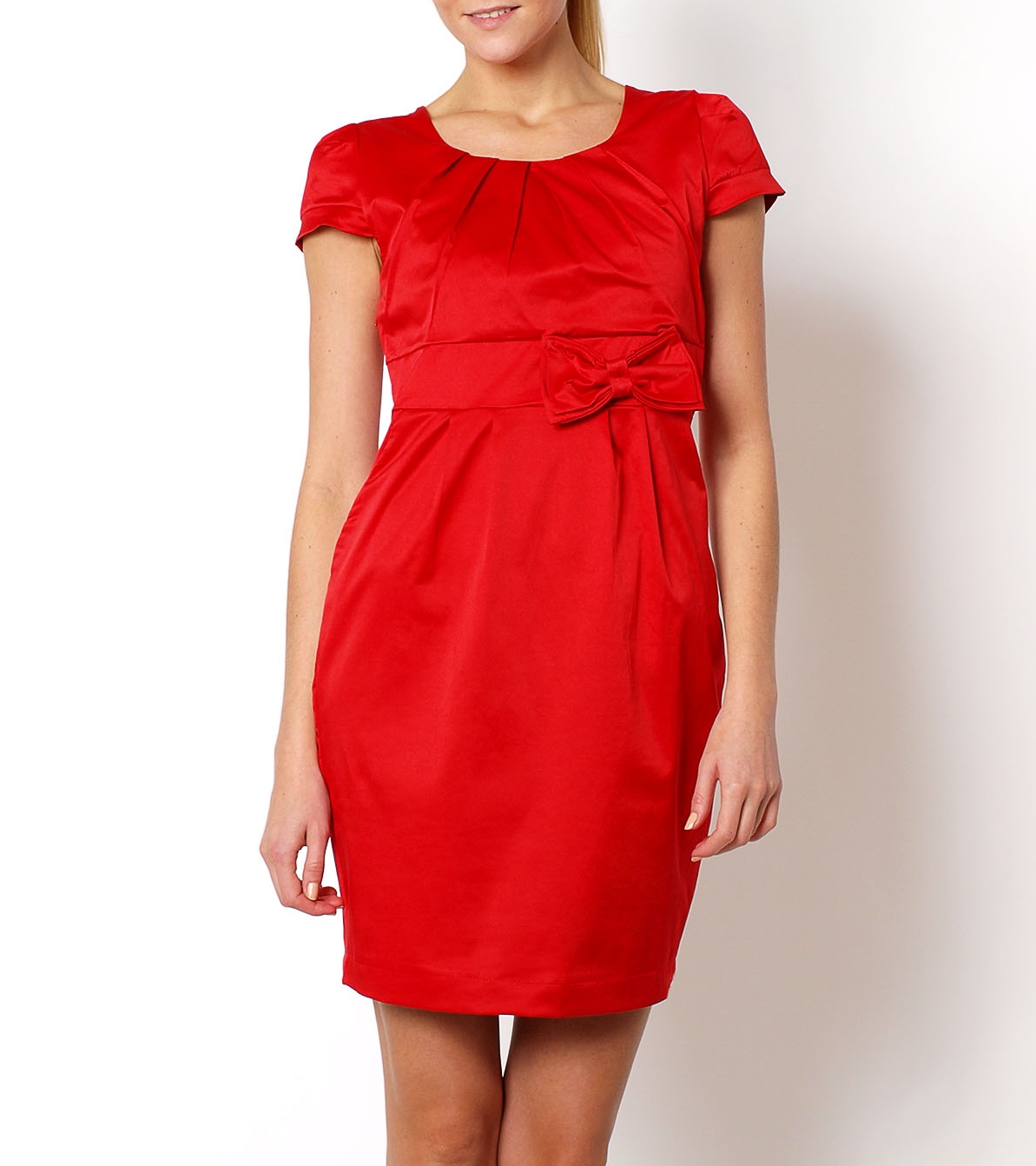 Sukienka, fason bombka, krótki rękaw, w talii kokarda, dekolt drapowany, odcinana pod biustem, zapinana z boku na kryty zamek.Materiał 95% bawełna, 5% lycra.Modelka wzrost 175cm, na co dzień nosi S/M, rozmiar z prezentacji produktu S/M