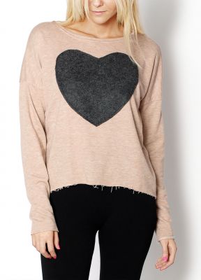Bluzka, krój oversize, kimono, fason luźniejszy, z przodu serce, delikatna asymetria z dłuższym tyłem, długi rękaw, wykonanie z miękkich połączonych materiałów. Materiał 65% bawełna, 35% poliester. Modelka wzrost 180cm, na co dzień nosi XS/S, rozmiar z prezentacji produktu S/M