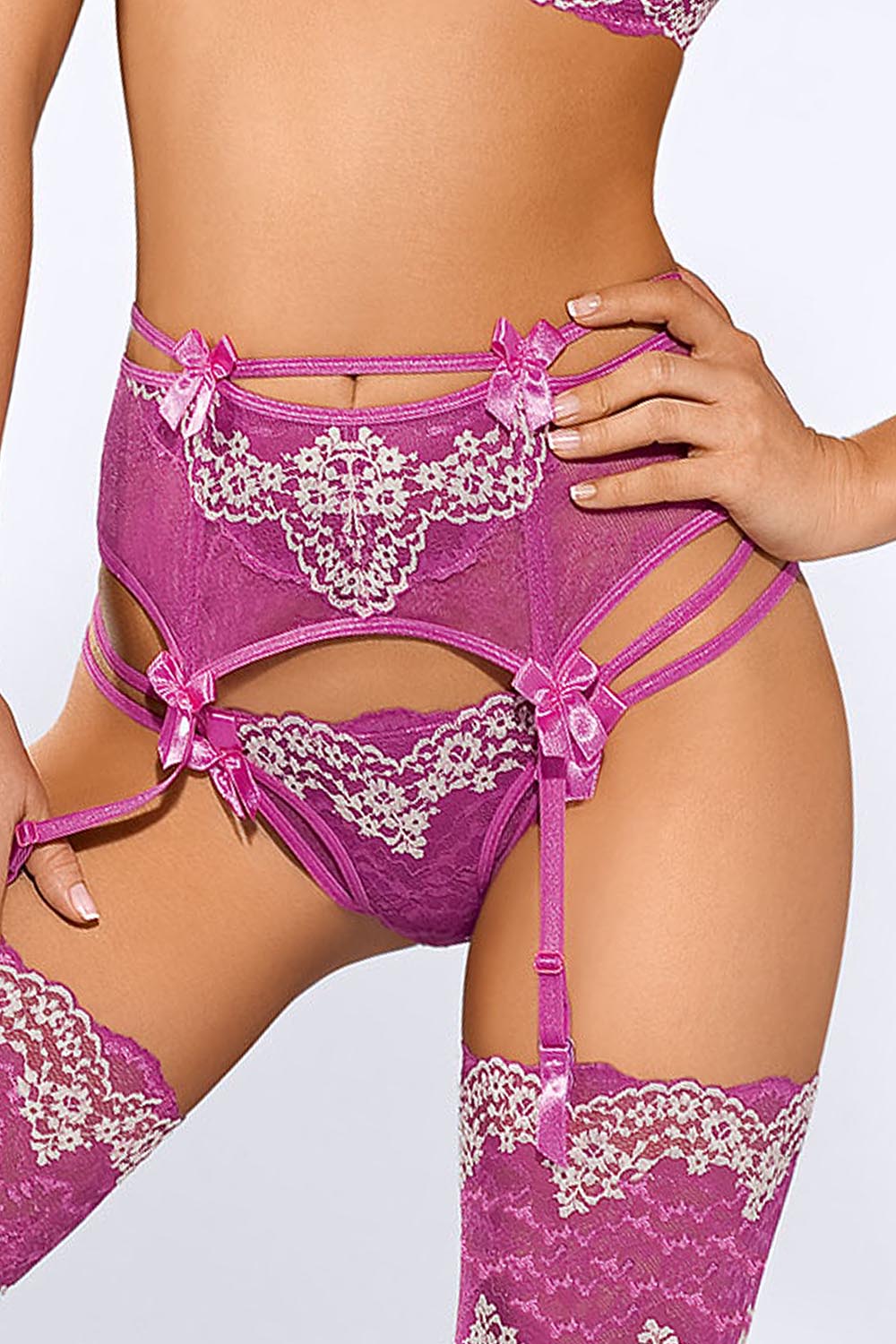 Strona główna/DLA NIEJ/Bielizna damska/Biustonosze/Gorsety, Body, PasyPas do pończoch Model V-5262 Eat me Pink/White