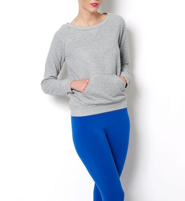 Pikowana bluza, przy rękawach i na dole bluzy ściągacze, z przodu kieszeń typu kangurka, dekolt okrągły.Materiał 65% bawełna, 35% poliester.Modelka wzrost 172, na co dzień nosi S, rozmiar z prezentacji produktu M/L