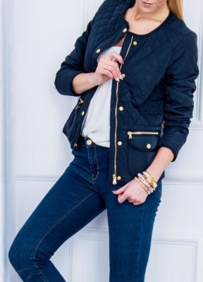 Jesienna pikowana kurtka typu pilotka bez kaptura. Zdobiona zipami w kolorze złotym. Zapinana na zamek oraz guziki na zatrzask. Dekolt okrągły. Z przodu pojemne kieszenie. W talli ściągana gumeczką, podkreślając figurę. Wewnątrz na podszewce.Wykończona lamówką. Dopasowany fason, pikowany na całej powierzchni. Klasyczne kolory do wyboru. Pikowana kurteczka damska z jesiennej kolekcji, świetnie spisze się również w okresie wiosennym. Idealna na pierwsze chłodniejsze dni. Modny fason doda szyku każdej stylizacji. Materiał 100% poliester.Modelka wzrost 175cm, na co dzień nosi rozmiar S/M