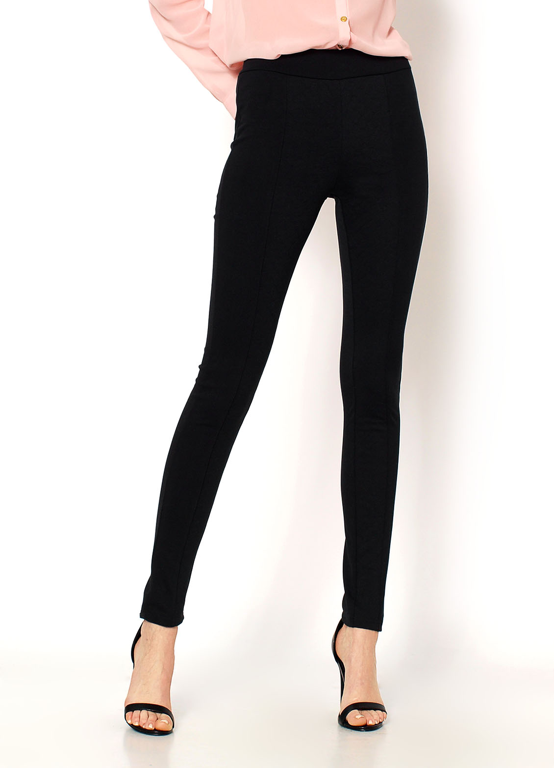 Spodnie pikowane od wewnętrznej strony ud, po zewnętrzej stronie ud i z tyłu materiał gładki, pionowe przeszycie wzdłuż nogawki, fason rurek, w pasie gumka, z tyłu imitacje kieszeni.Materiał 65% bawełna, 35% poliester.Modelka wzrost 175cm, na co dzień nosi S/M, rozmiar z prezencji produktu S