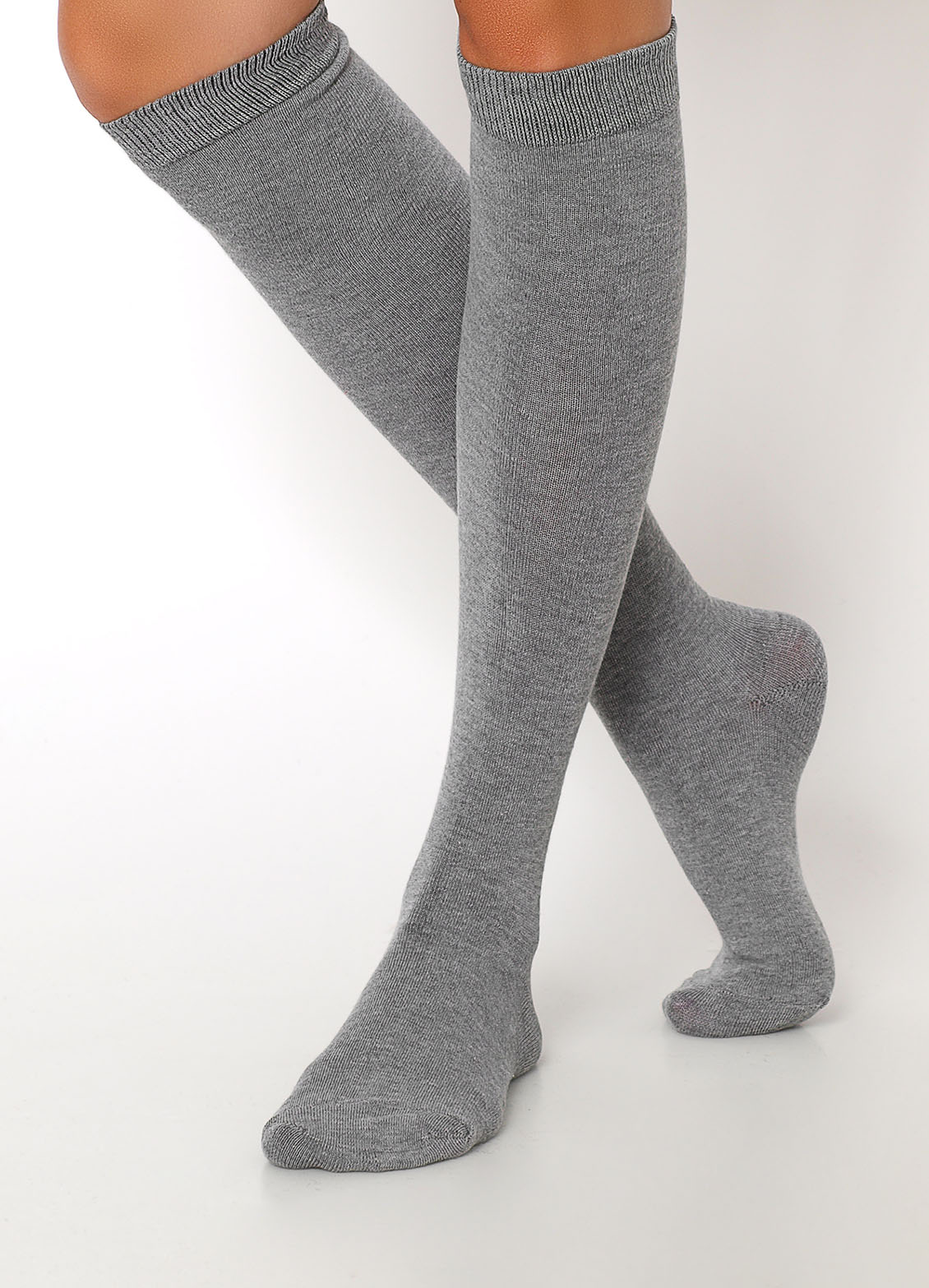 Podkolanówki, zakończone ściągaczem, lekkie wzmocnienia na palcach i piętach.Materiał 90% bawełna, 8% poliamid, 2% elastan.