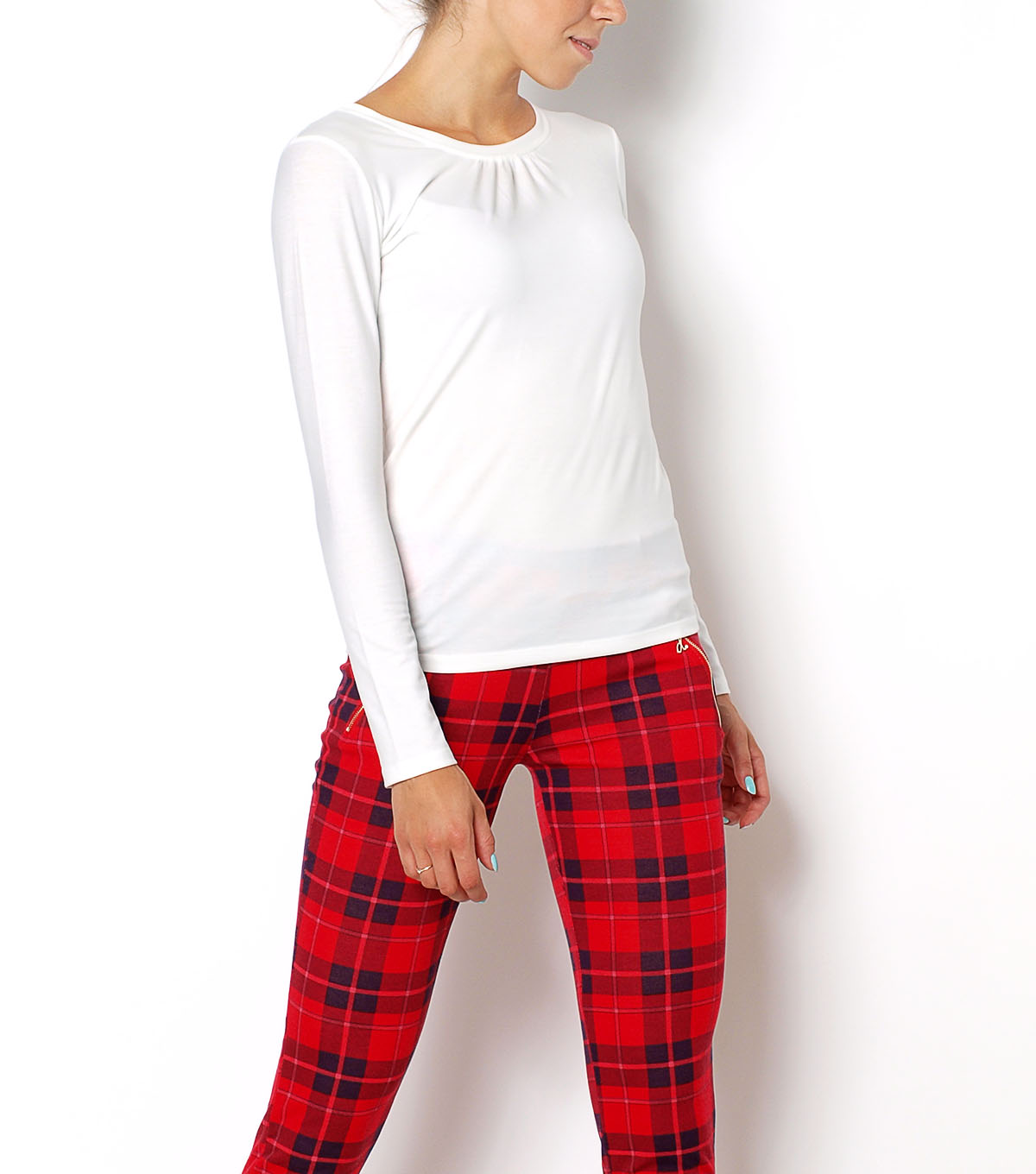 Prosta, klasyczna bluzka z długim rękawem, dekolt okrągły, z przodu pod dekoltem delikatne marszczenia.Materiał 95% bawełna, 5% lycra.Modelka wzrost 172cm, na co dzień nosi S/M, rozmiar z prezentacji produktu M/XXL (UNIWER 1)
