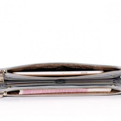 Strona głównaPortfeleProsta skórzana damska kopertówka Szara