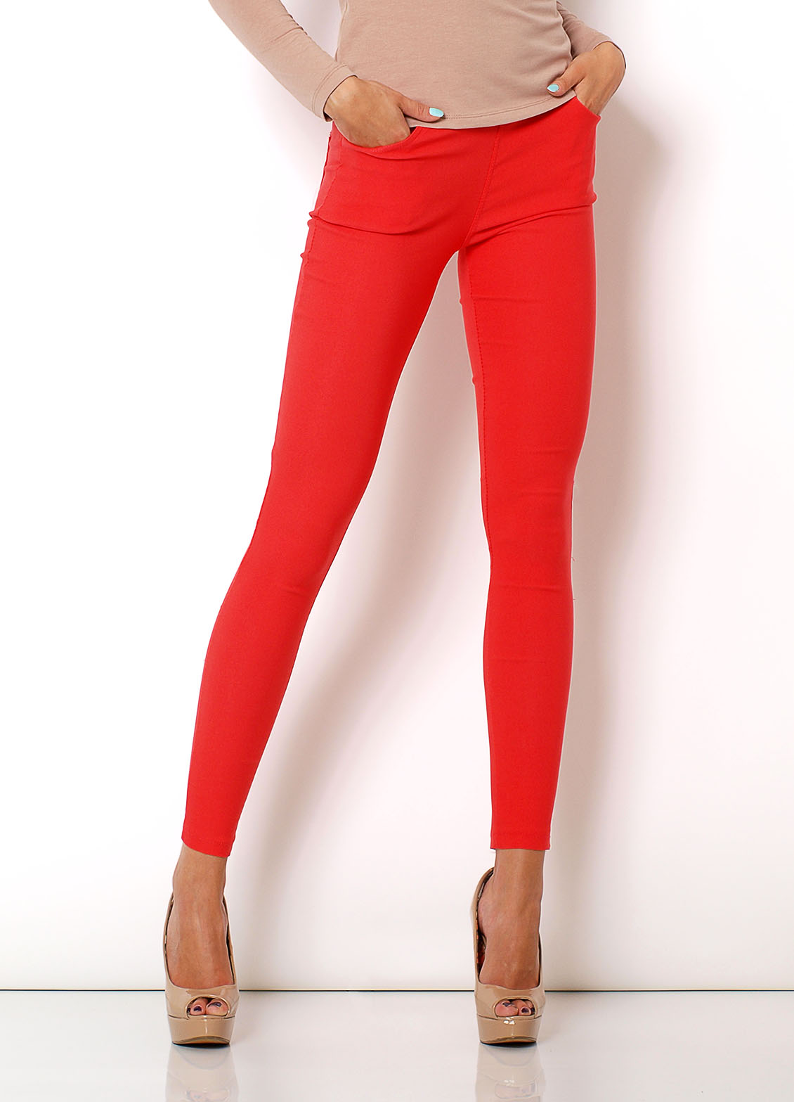 Spodnie/rurki, elastyczny materiał, w pasie gumka, kieszeni z przodu i z tyłu, zamek z tyłu na nogawce. Materiał 65% poliester, 35% bawełna, 5% elastanModelka wzrost 172cm, na co dzień nosi S/M, rozmiar z prezentacji produktu M