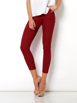 Spodnie z elastycznego materiału, z wyższym stanem i gumką w pasie. Kieszenie z przodu wykończone złotym zamkiem i sygnowanym guzikiem, z tyłu imitacje kieszeni.Modelka wzrost 172 cm, na co dzień nosi S/M
