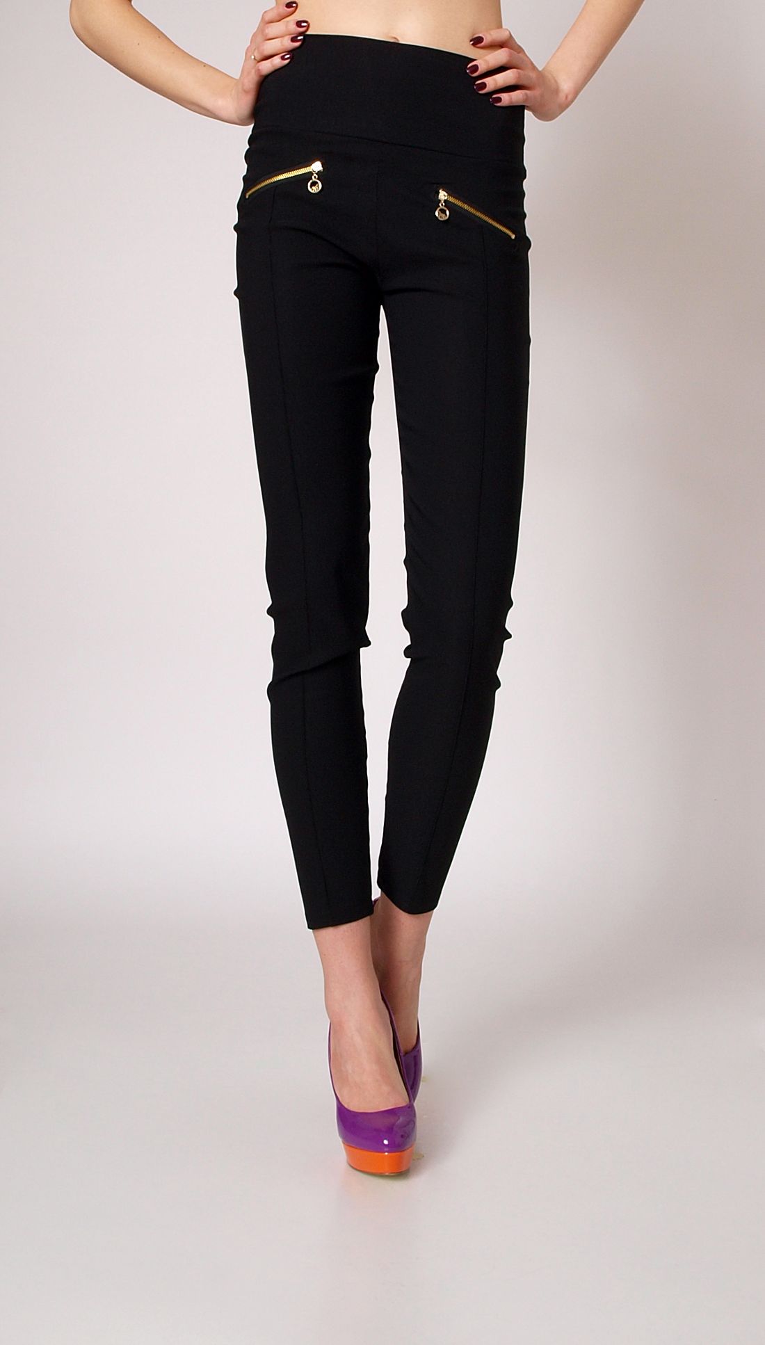 Bawełniane, przyjemne spodnie typu rurki. Wygodne bryczesy z pionowymi przeszyciami na nogawkach. Spodnie posiadają wysoki stan i szeroki pas. Model, który rewelacyjnie wysmukli sylwetkę! Z przodu ozdobne złote zamki (imitacja kieszeni). Materiał elastyczny, dobrze dopasowuje się do figury, dzięki czemu rurki polecamy paniom o każdym typie sylwetki. Zawsze modne i niezwykle praktyczne. Skład: 80% bawełna, 10% poliester, 10% spandex.
