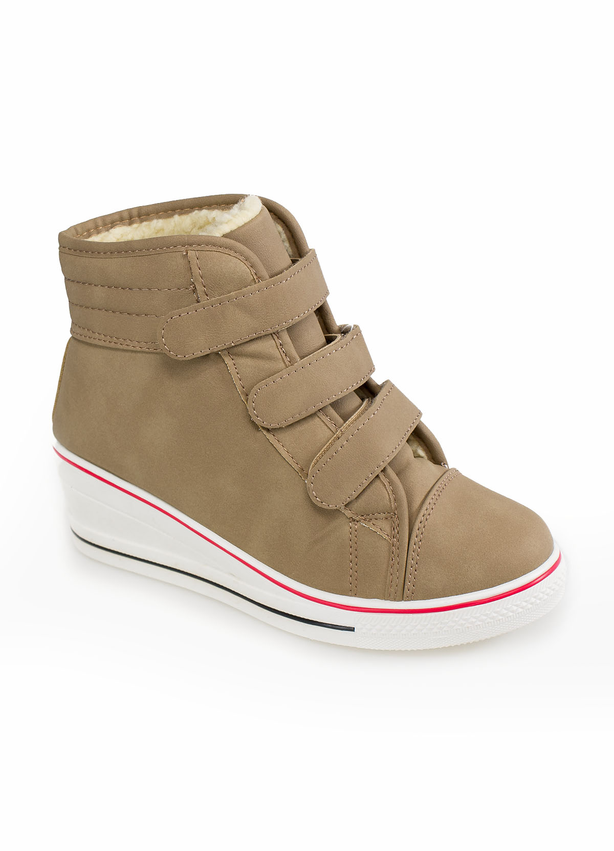 Sneakersy damskie ocieplane kożuszkiem. Stabilna, gumowa koturna ładnie podwyższa sylwetkę. Zapinane na rzepy, co ułatwia nakładanie i zdejmowanie. Modne kolory do wyboru.Wygodne, ocieplane obuwie, modny sportowy design połączony z niezwykłą funkcjonalnością. Idealne do ciekawych stylizacji w niezobowiązującym, codziennym i miejskim stylu.