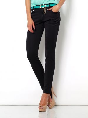Spodnie zwężana nogawka, półmatowy materiał. Z tyłu wykończenie przy kieszeniach drobnymi dżetami, z przodu spodnie zapinane na zamek i guzik, wykończone nitami w postaci cyrkonii, posiadają szlufki. GRATIS - Do spodni dołączony jest pasek z ozdobną klamrą, kolor paska dobierany jest losowo.Materiał:65% bawełna, 30% poliester, 5% elastan.Modelka: wzrost 172cm, na co dzień nosi S/M, rozmiar z prezentacji produktu 27(M/L)