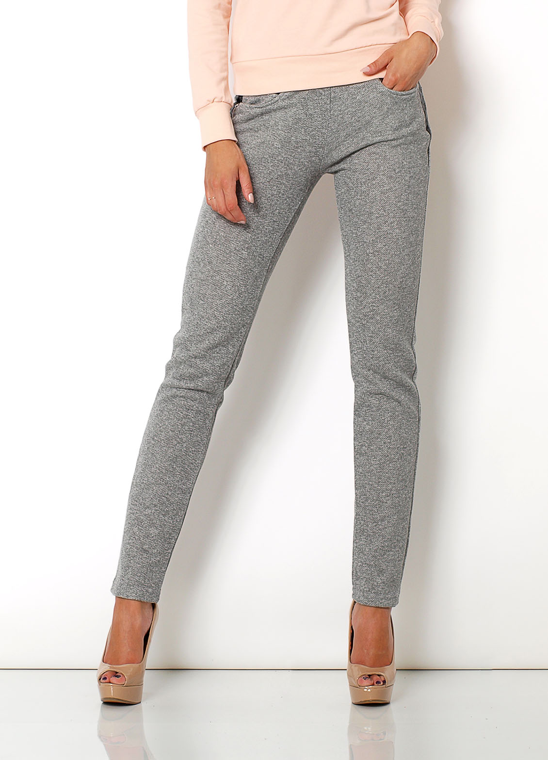 Spodnie dresowe cieniowane, wstawki z ekoskóry po bokach i na wykończeniu kieszeni z tyłu,z przodu kieszenie,z tyłu imitacja kieszeni, nogawka lekko zwężana, dostępne w odcieniach szarości. Materiał 65% bawełna, 35% poliester. Modelka wzrost 172cm, na co dzień nosi S/M, rozmiar z prezentacji produktu M.
