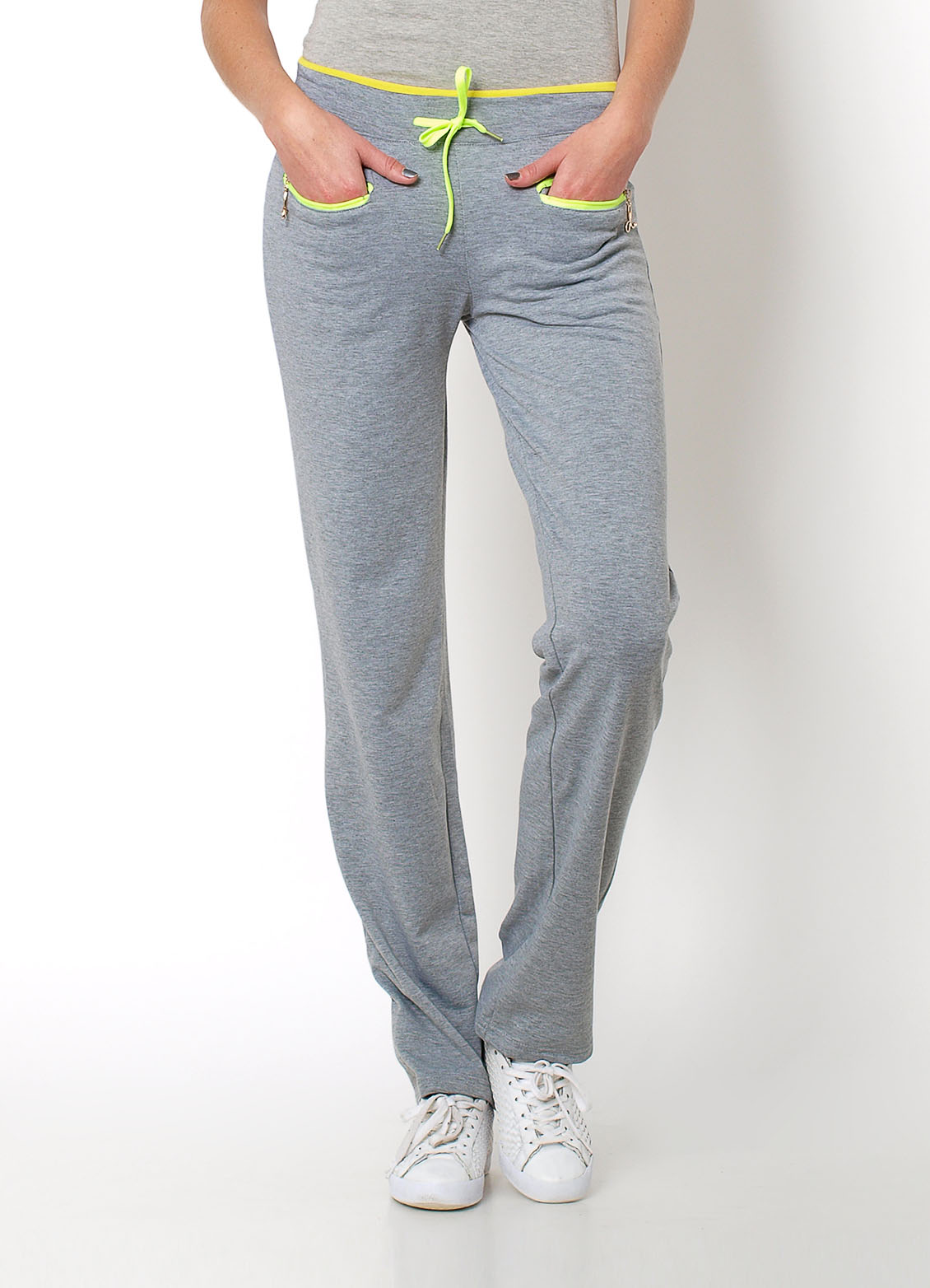 Spodnie dresowe z prostą nogawką, ocieplane, w pasie gumka i sznurek do regulacji, z przodu kieszenia na zamek, elementy w kontrastowych kolorach.Materiał 35% bawełna, 65% poliester Modelka wzrost 175cm, na co dzień nosi S/M, rozmiar z prezentacji produktu M