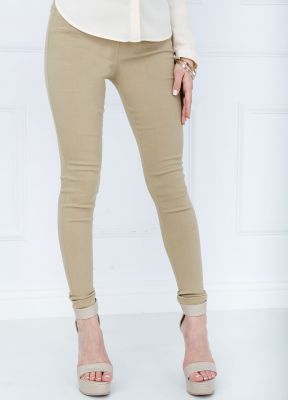 Spodnie elastyczne, jak legginsy czy tregginsy, z wyższym stanem i kieszonkami. Dopasowane rurki wykonane z elastycznego materiału, który dobrze dopasuje się do ciała. Z tyłu małe wsuwane kieszonki, z przodu imitacja kieszeni. W pasie gruba guma. Klasyczne jasne kolory do wyboru.Dopasowane spodnie materiałowe to klasyka w damskiej garderobie, a urozmaicenie modnym detalem przyciągnie spojrzenia. Ładnie wymodelują sylwetkę. Klasyczny kolor i fason pozwolą na dobór dowolnych dodatków i dopasują się do każdego stylu, są idealne na jesień i zimę. Uniwersalne spodnie, pasujące do każdego stylu i na każdą okazję.Materiał 60% bawełna,35% poliamid, 5% elastanModelka wzrost 170cm, na co dzień nosi rozmiar S/M