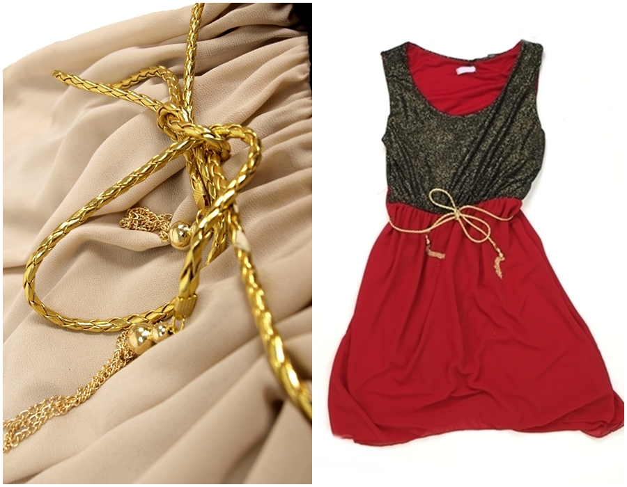 Elegancka, zwiewna sukienka na grubych ramiączkach. Góra tuniki jest czarna i lśniąca jak brokat. Dół jest dwuwarstwowy - z wierzchu lekka mgiełka, a pod spodem nieprześwitująca podszewka. Długość sukienki asymetryczna - przód krótszy, a tył dłuższy. W talii ściągana elastyczną gumeczką, dodatkowo ozdobny złoty sznureczek (są szlufki, więc można też przepasać innym paskiem bądź tasiemką). Włoska jakość! Skład: 60% poliester, 30% wiskoza, 5% elastan
