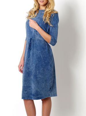 Marmurkowa sukienka ściągana w talii, z rękawem 3/4. Długość do kolan, wyprofilowana w biodrach. UWAGA!!! Odcienie sukienek oraz wzory odbarwień mogą różnić się nieznacznie od prezentowanych na zdjęciach.Materiał: 90% bawełna, 10% elastan.Modelka: wzrost 175 cm.