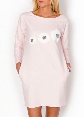 Sukienka dresowa - wygodna i uniwersalna.Długi rękaw, wykonana z przyjemnego bawełnianego materiału. Prosty, nieco luźniejszy krój, odpowiedni dla każdego typu sylwetki.Po bokach wsuwane kieszenie. Z przodu subtelny, kobiecy nadruk z kwiatowym motywem.Sukienka świetnie sprawdzi się noszona na co dzień, jak i różnego typu okazje, zarówno do sportowych trampek, czy w wersji bardziej eleganckiej do butów na obcasie.Produkt turecki dobrej jakości.Materiał 100% bawełnaModelka wzrost 175cm, na co dzień nosi rozmiar S/M