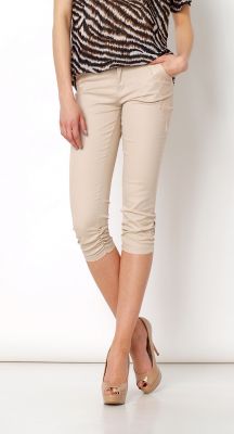 Bawełniane rybaczki z wstawkami po bokach z pięknej, stylowej koronki. Spodenki zapinane są na guzik oraz zamek. W pasie szlufki. Nogawki marszczone (podszyte gumeczką), za kolano. Praktyczne kieszenie z przodu i z tyłu. Ładnie dopasowują się do ciała, optycznie wysmuklają sylwetkę. Letnie bermudy, świetnie sprawdzą się noszone w wielu modnych zestawieniach. Idealna na co dzień, jak również na różnego typu okazje. Dostępne w ślicznych pastelowych odcieniach. Skład: 95% bawełna, 5% elastan.Wzrost modelki: 172cmModelka ma na sobie: rozmiar z metki SNa co dzień nosi rozmiar: S/M