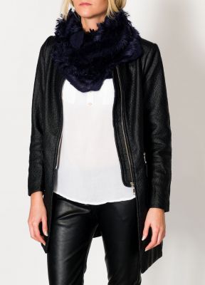 Efektowny, bardzo oryginalny komin. Szal z futerkiem w kształcie tuby, wkładany przez głowę. Gruby, przyjemny w dotyku. Nakładany na głowę, doskonale ochroni przed wiatrem oraz chłodem. Dostępny w modnych w tym sezonie kolorach.Materiał 100% akryl (wełna syntetyczna)