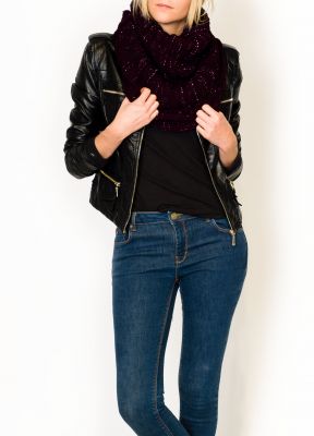 Mega gruby komin z błyszczącą nitką. Bardzo ciepły szal w kształcie tuby, wkładany przez głowę. Tunel o ciekawym splocie. Świetnie ochroni przed zimnem, nawet w najchłodniejsze dni. Modne oraz praktyczne uzupełnienie każdej zimowej stylizacji.
