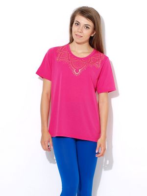Bluzka z krótkim rękawem, o klasycznym kroju. Zdobiona przy dekolcie cyrkoniami, które układają się w piękny, efektowny wzór. Materiał z którego jest wykonana koszulka, jest miękki, przyjemny dla ciała. Prosty, klasyczny model, który idealnie sprawdzi się noszony na wiele okazji. Pasuje paniom o każdym typie sylwetki. Bluzka dostępna w wielu modnych kolorach do wyboru.Wzrost modelki: 172cmModelka ma na sobie rozmiar: MNa co dzień nosi rozmiar: S/M