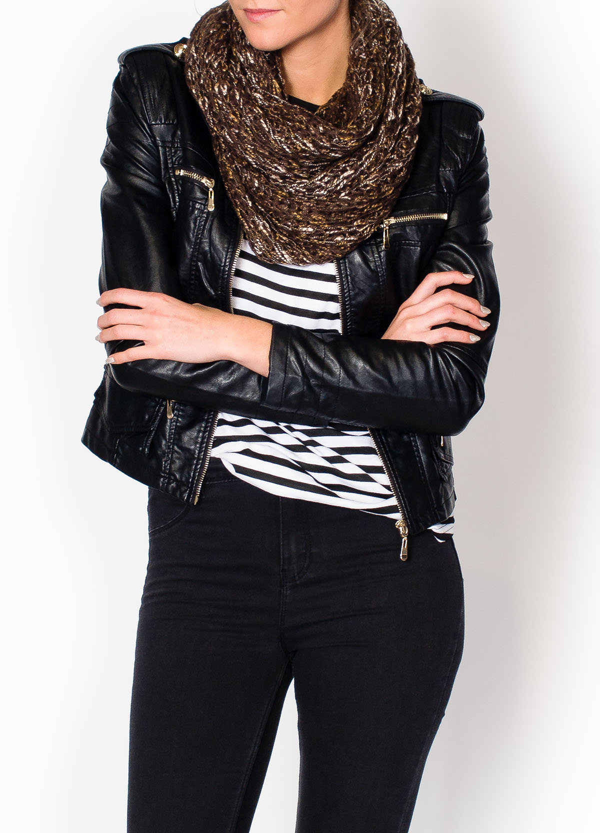 Modny, ciepły komin, przeplatany kolorową nitką. Gruby, przyjemny w dotyku szalik w formie tuby, wkładany przez głowę. Miękki, łatwy do ułożenia. Idealnie sprawdzi się jako dopełnienie stylizacji nawet w najbardziej mroźne zimowe dni. Dostępny w pięknych kolorach.Materiał 70% wiskoza, 30% moher.