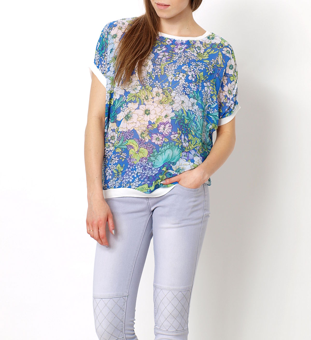 Lekka, przewiewna bluzka z krótkim rękawem. Dół oraz rękawki wykończone białą lamówką. Półkryjąca mgiełka w niepowtarzalny kwiatowy wzór. Motyw floral jest nie tylko mega modny w tym sezonie, ale również pozwala poczuć się wyjątkowo i niezwykle kobieco. Świetnie sprawdzi się noszona w wielu letnich stylizacjach. Wygodna, a przede wszystkim bardzo efektowna. Skład: 100% poliester.