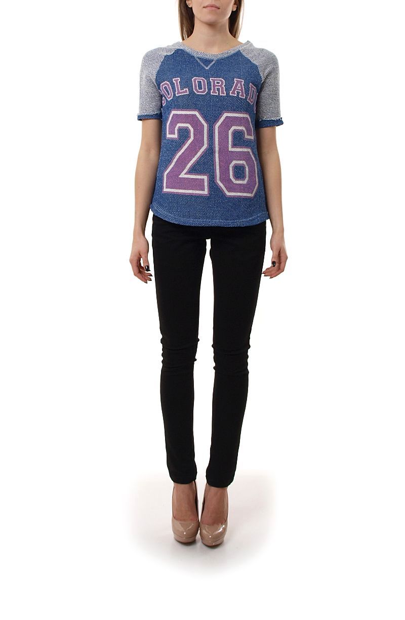 Bluzka z kolorowym, modnym nadrukiem. Bluzka posiada krótki rękaw. Wykonana z grubego, ciepłego materiału o ciekawej fakturze. Dekolt okrągły. Bardzo modny w tym sezonie, luźny krój. Świetna do codziennych, sportowych stylizacji. Skład: 100% bawełna.