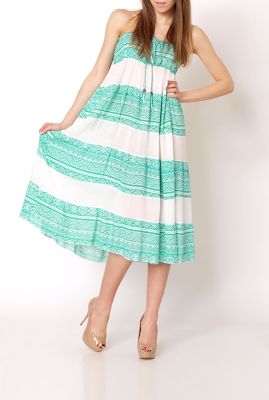 Letnia sukienka maxi, która śmiało posłużyć może również jako spódnica! Niezwykle zwiewna i wygodna. Wykonana z oddychającej bawełny. Góra marszczona, dzięki czemu dobrze trzyma się ciała. Dodatkowo zakończona sznureczkiem, który można zawiązać na szyi, bądź zawiązać na kokardkę. Wzorzysta sukienka w pasy. Świetna propozycja na ciepłe, letnie dni. Rewelacyjnie prezentuje się na sylwetce. Bardzo modny i kobiecy model. Skład: 100% bawełna.