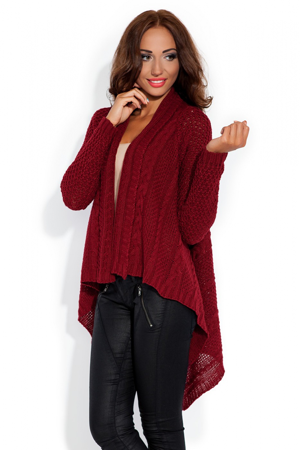 Strona główna/DLA NIEJ/Moda damska/Swetry damskie/Swetry Rozpinane, PonczaSweter Damski Model F148 Bordo