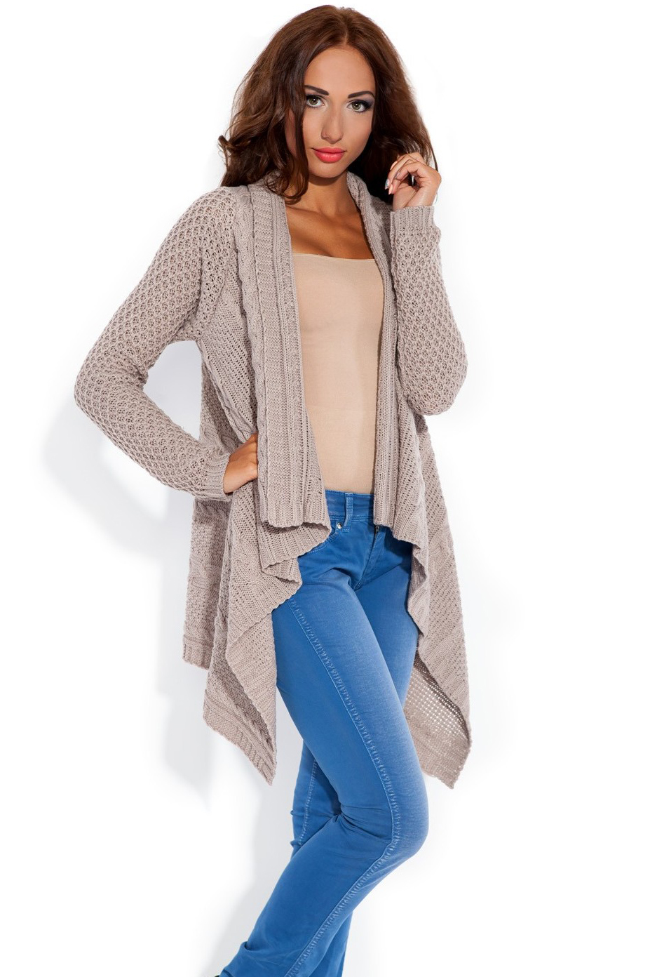 Strona główna/DLA NIEJ/Moda damska/Swetry damskie/Swetry Rozpinane, PonczaSweter Damski Model F148 Mocca