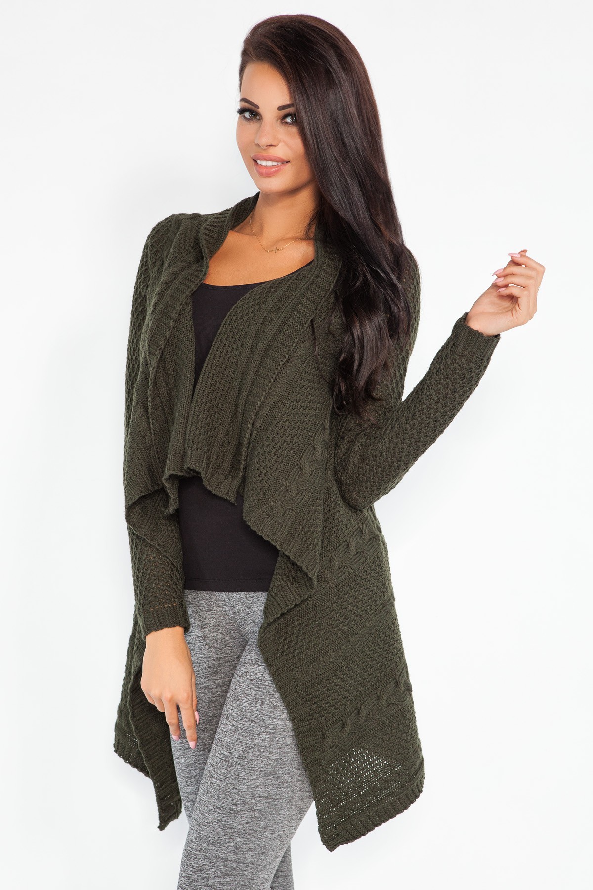 Strona główna/DLA NIEJ/Moda damska/Swetry damskie/Swetry Rozpinane, PonczaSweter Damski Model F148 Oliwka