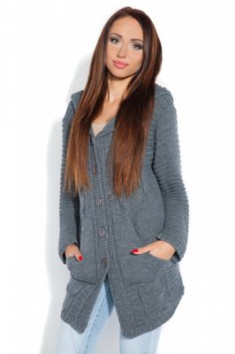 Długi, gruby kardigan z warkoczami i kapturem. Zapinany na guziki, klasyczny model z kieszeniami powinien znaleźć się w szafie każdej kobiety.