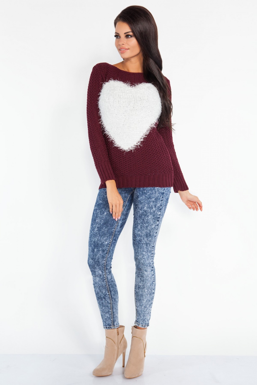 Strona główna/DLA NIEJ/Moda damska/Swetry damskieSweter z sercem F158 Bordo