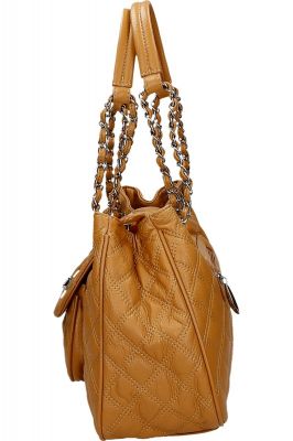 Pikowana torebka średniej wielkości wykonana ze skóry ekologicznej. Torebkę można nosić w ręku i na ramieniu. Długość uchwytów 60 cm.- Wnętrze wykończone brązową, żakardową podszewką- Dwie rączki wykończone łańcuszkami- Jedna duża komora zapinana na ekspres oraz dodatkowo na przekręcany klips- W środku mała kieszonka na ekspres oraz dwie otwarte kieszonki na telefon i na dokumenty- Dodatkowo duża kieszeń na suwak dzieląca torbę na dwie komory- Zewnętrzna kieszonka na ekspres, druga otwarta umieszczona pod klapą