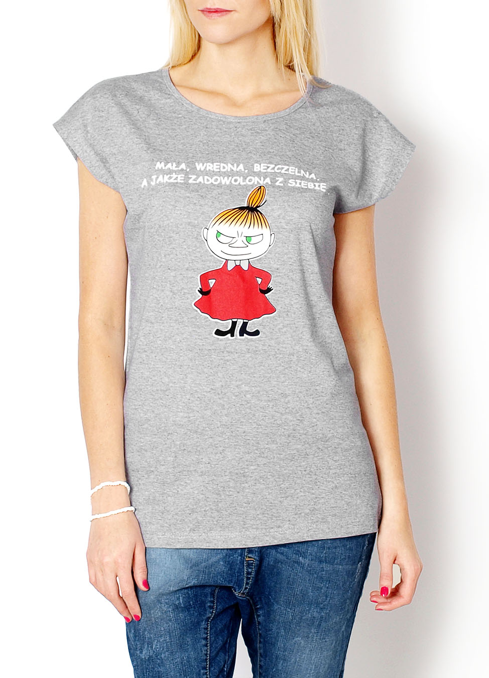 Koszulka z nadrukiem, dekolt okrągły, krótki rękaw, luźny krój.Modelka: wzrost 175 cm, na co dzień nosi S/M, rozmiar z prezentacji produktu S.