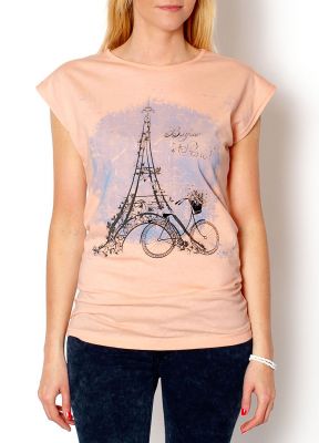 Bawełniana bluzka, krótki rękaw, dekolt okrągły. Na przodzie modny nadruk.Materiał: 100% bawełna.Modelka: wzrost 175 cm, na co dzień nosi S/M, rozmiar z prezentacji produktu M.