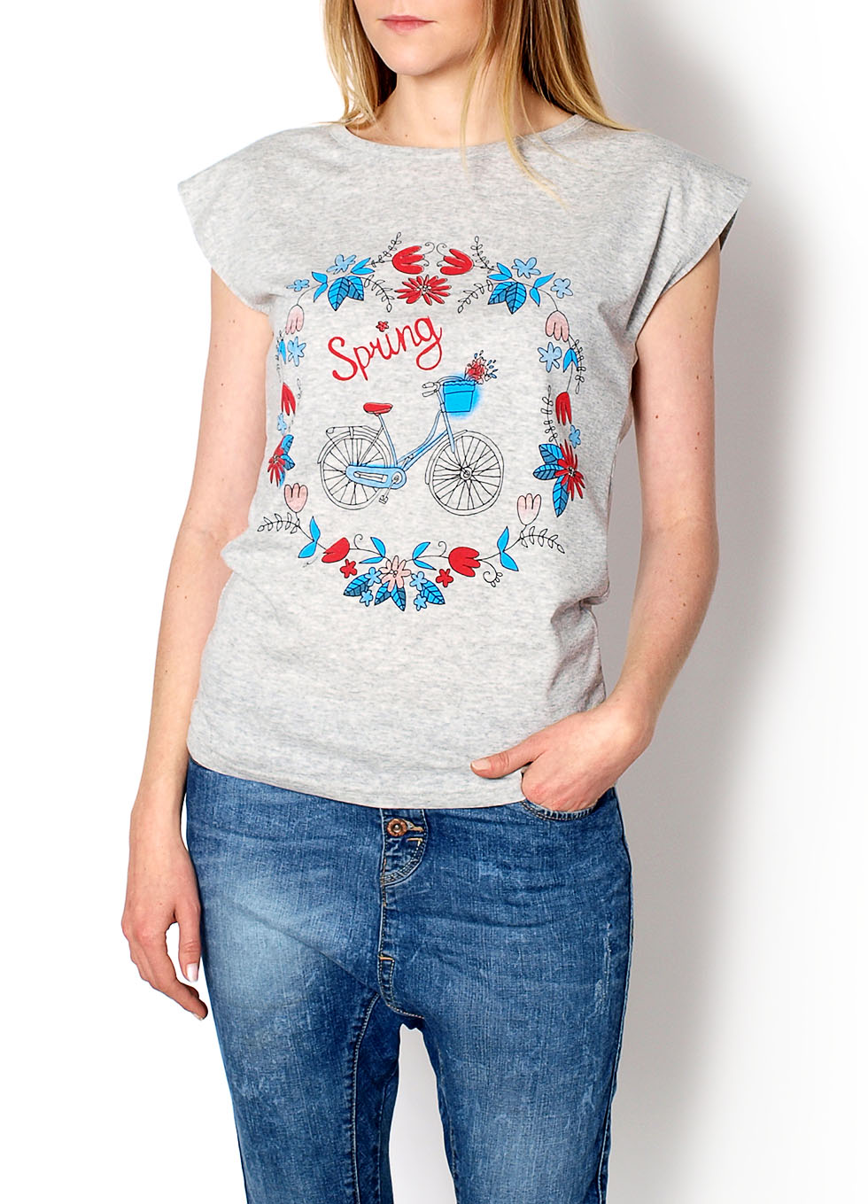 Bluzka posiada okrągły dekolt. Z przodu nadruk z napisem Spring-wiosna. Wykonana z oddychającej bawełny. Idealna do jeansów, letnich szortów oraz spódniczek. Materiał 100% bawełnaModelka wzrost 175cm, na co dzień nosi S/M, rozmiar z prezentacji produktu S