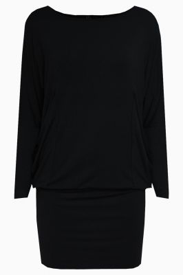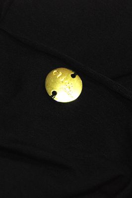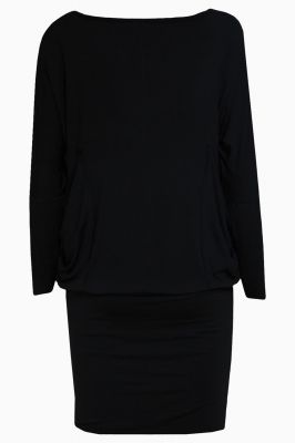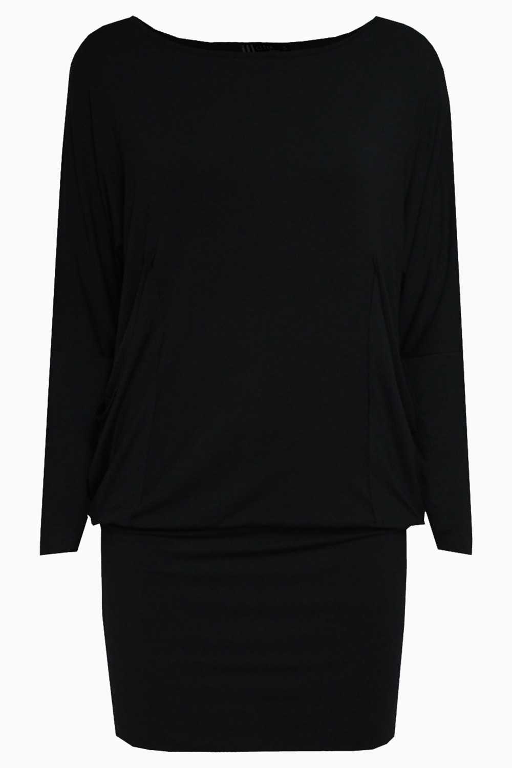 Tunika z długimi rękawami i łódkowym dekoltem, wykonana z miękkiego w dotyku materiału w kolorze czarnym. Po obu stronach znajdują się luźne, marszczone kieszenie. Na jednej z nich - blaszka z ligo Click w kolorze złotym.