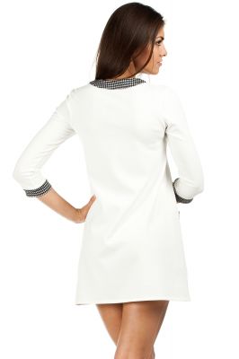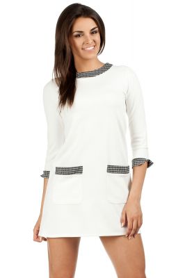 Tunika a la lata 60-te ozdobiona wstawkami w pepitkę. Fason trapezu z dwiema kieszeniami na przodzie. Tunika posiada rękawy 3/4.