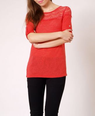 Miękka w dotyku, komfortowa bluzeczka. Bluzka z długim rękawem i pięknym, ażurowym dekolt i ramionami. Zdobiona z przodu dodatkowo delikatnymi cyrkoniami. Istnieje możliwość podpięcia rękawka do długości 3/4. Ładnie układa się na sylwetce. Efektownie prezentuje w zestawieniu z jeansami, stylowymi szortami, czy legginsami. Dostępna w modnych wiosennych odcieniach.Skład: 100% poliester.