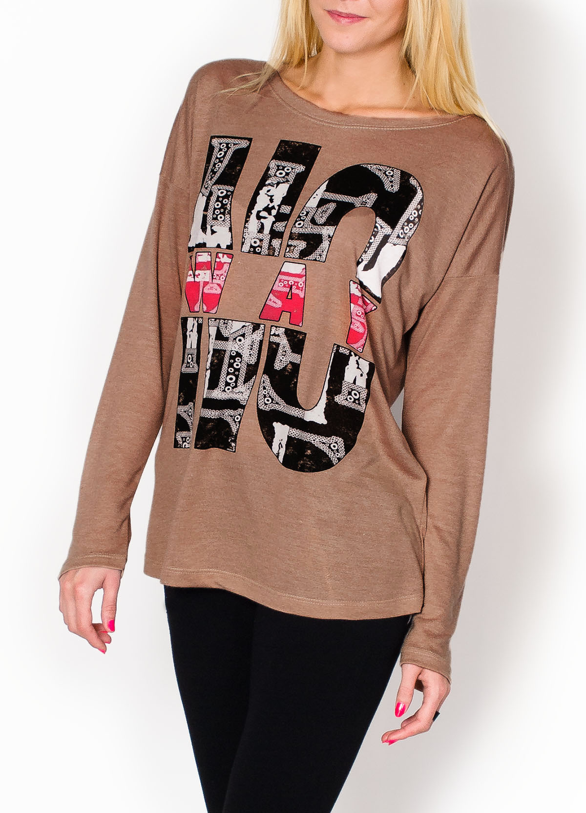Strona głównaOdzież damskaBluzkiDługi rękawWygodna bluzka z nadrukiem NO WAY
