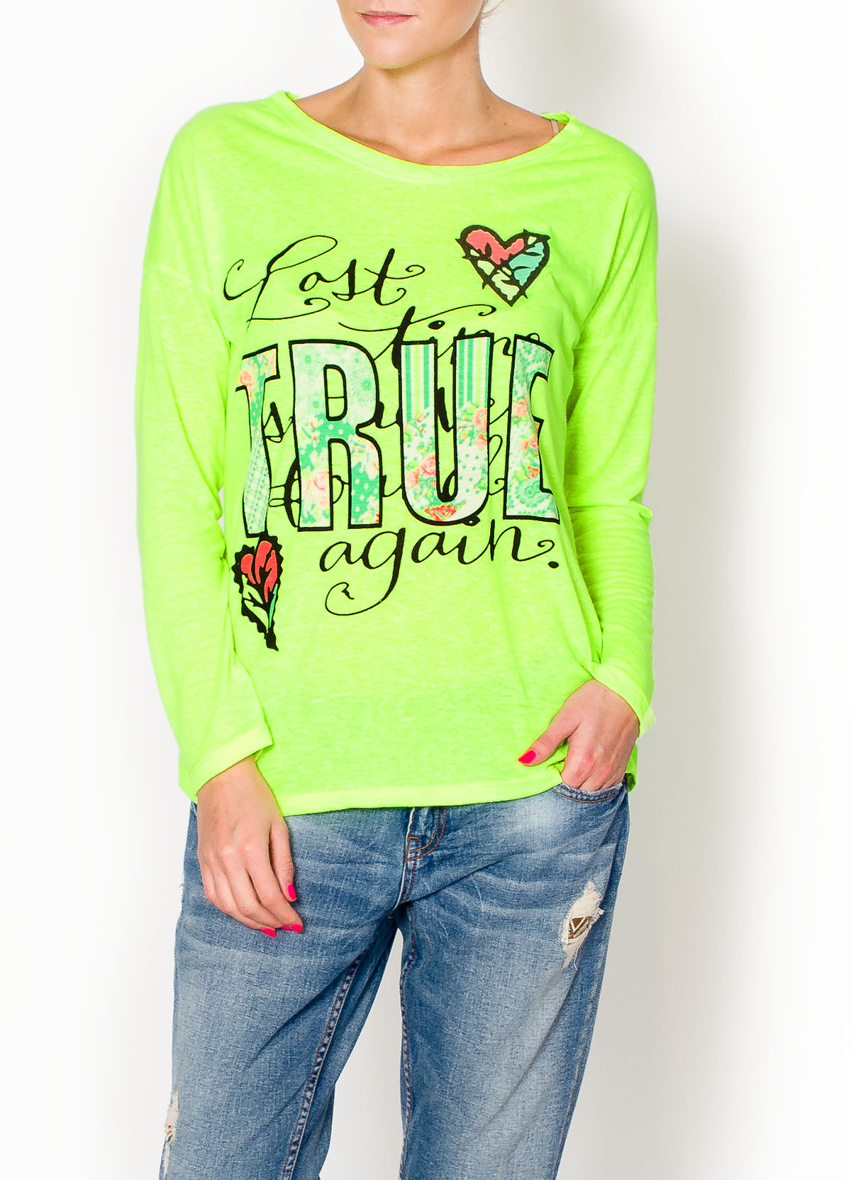 Strona głównaOdzież damskaBluzkiDługi rękawWygodna bluzka z nadrukiem TRUE