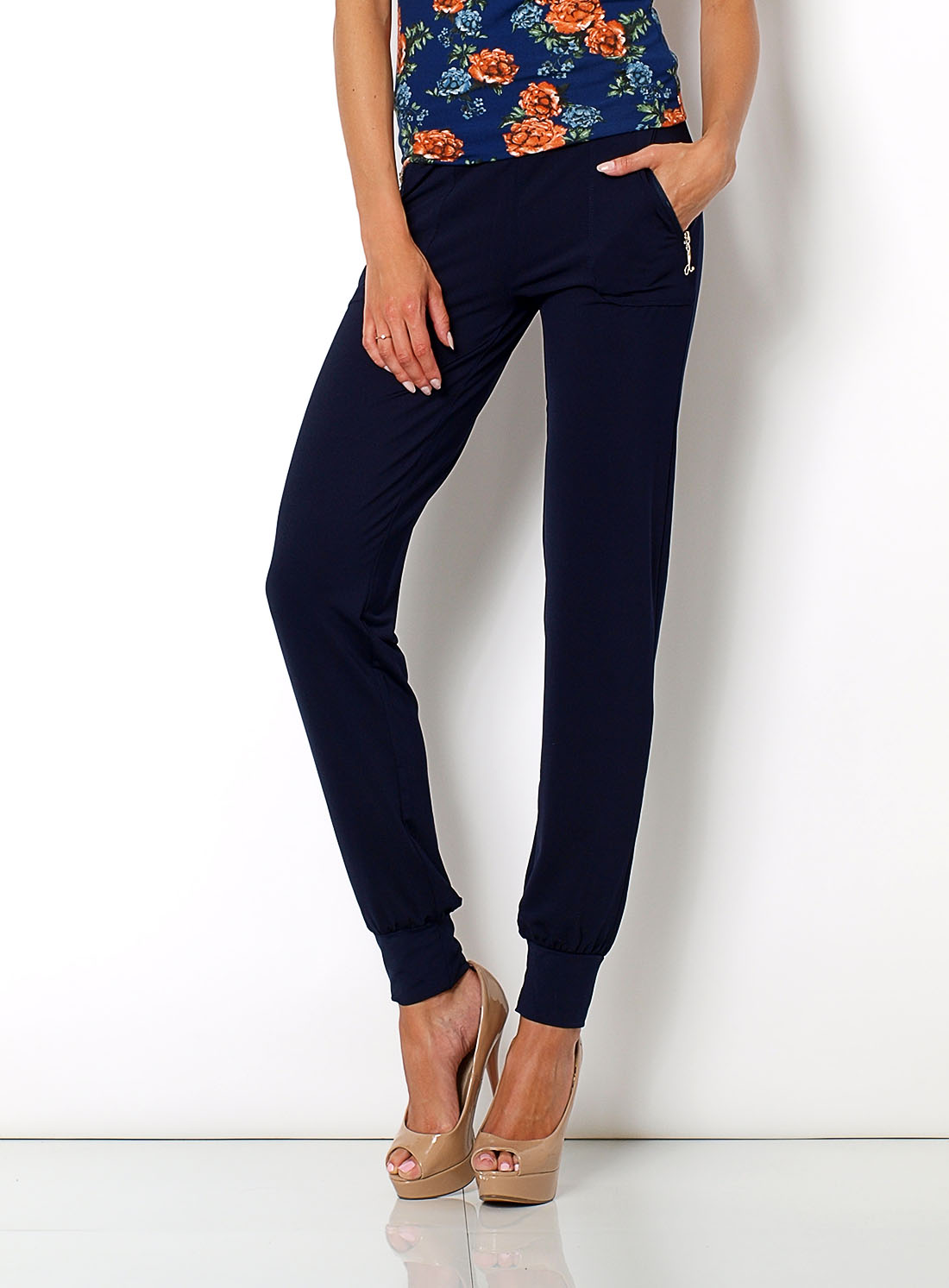 Wygodne spodnie dresowe, posiadają ściągacze przy nogawkach, gumkę w pasie, sznureczek do regulacji wewnątrz, kieszenie z przodu zapinane na złoty zamek, z tyłu brak kieszeni. Materiał 35% bawełna, 65% poliesterModelka wzrost 172cm, na co dzień nosi S/M, rozmiar z prezentacji produktu M