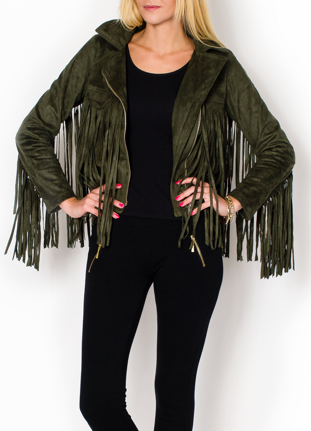 Kurtka z frędzlami, czyli styl BOHO w klasycznym wydaniu. Zapinana na złoty zamek. Dobrze skrojona i dokładnie wykończona. Wykonana z doskonałej jakości miękkiego zamszu. Przyjemna w dotyku, dobrze dopasowuje się do sylwetki. Modny krój kurteczki, w sam raz na jesienne dni. Kurtka ramoneska prezentuje się wprost zjawiskowo.Styl Boho / frędzle noszą celebrytki, stylistki i blogerki na całym świecie. Będzie rewelacyjnym dopełnieniem wielu stylizacji, obok których nikt nie przejdzie obojętnie!Materiał 00% poliesterModelka wzrost 175cm, na co dzień nosi rozmiar S/M